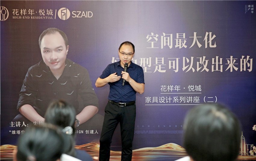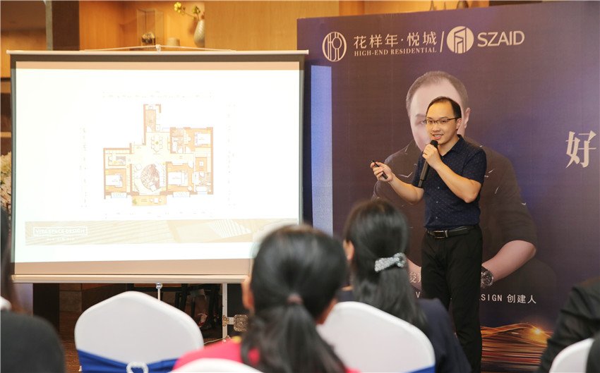讲座上,“维塔空间设计”VITA SPACE DESIGN创建人朱俊翔老师从生活观点、空间观点、居室设计原则、户型个案分析等方面深入分析,为花样年·悦城的业主带来了内容丰富的空间设计科普讲座。